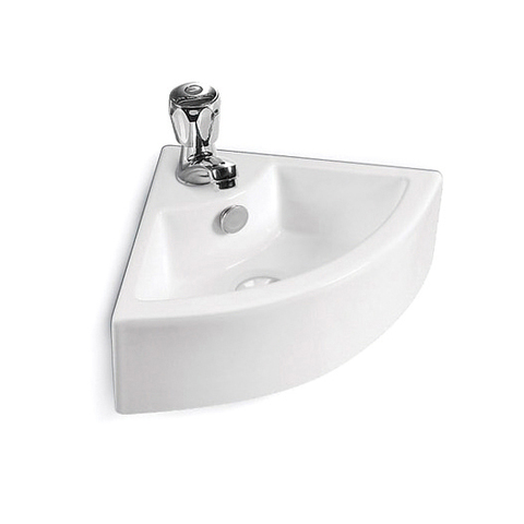 Piccolo Angolo di Montaggio A Parete Lavello del vaso, Bianco Vitreous China, sopra il Contro Angolo Lavello con il Singolo Rubinetto del Foro e Troppo Pieno