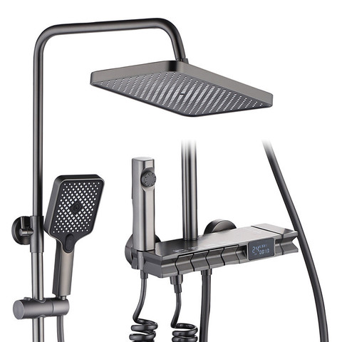 Design moderno all'ingrosso casa sistema doccia a temperatura controllata in acciaio inox spazio in alluminio materiale pianoforte chiave doccia